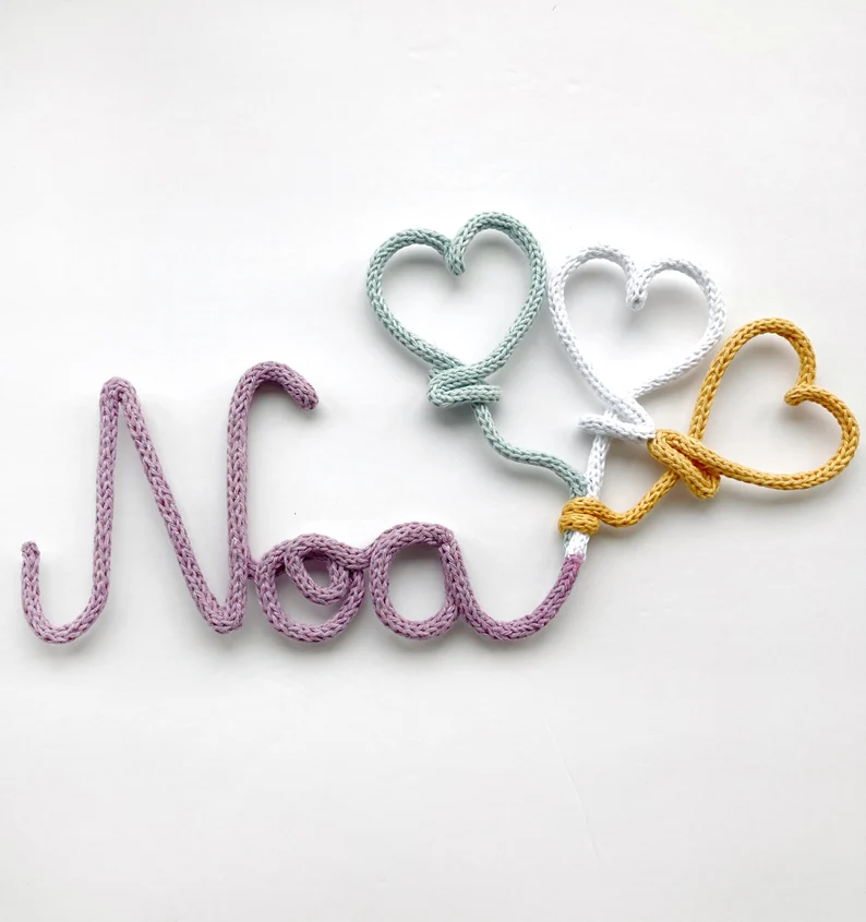Haz que cada rincón de tu hogar sea único con nuestros nombres personalizados en tricotín. Elaborados a mano con cuidado y dedicación, estos nombres son ideales para añadir un toque especial y personal a tus decoraciones. Perfectos para habitaciones infantiles, regalos de nacimiento, o como detalle decorativo en eventos.